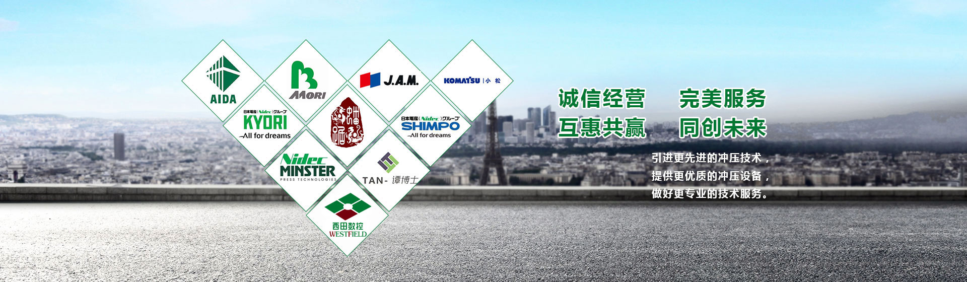 我公司致力于高精密先進沖壓設備及技術的引進,促進國內沖壓技術的改進、提高,與國際一流的沖壓設備制造廠家合作,互利互惠、實現共贏。